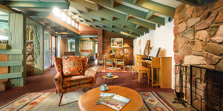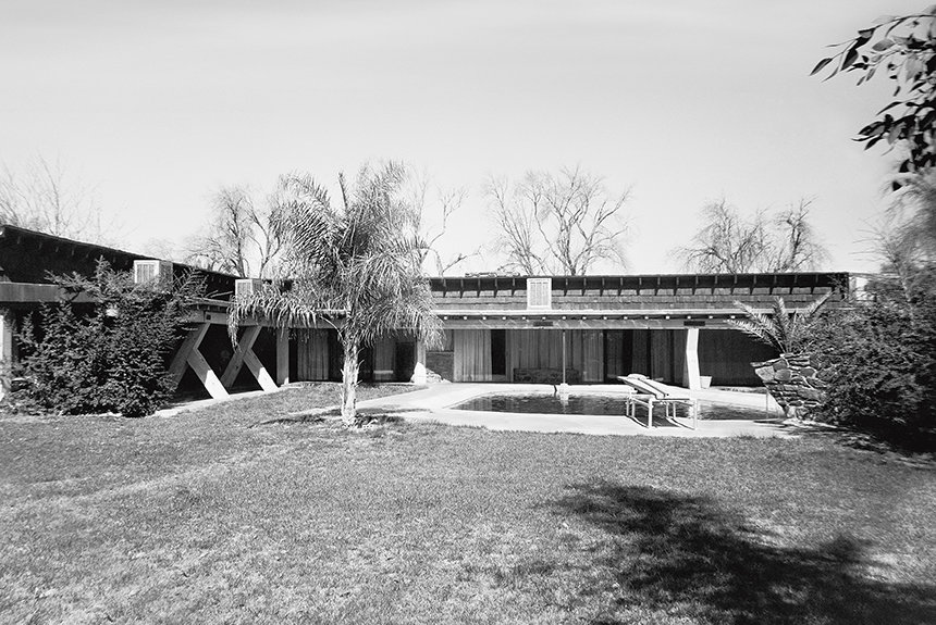 彼のオズボーン・ロードの敷地は、プレーリースタイルの際立った代表例と言える建築で、1948年に建てられたものです。当時は、その後フェニックス郊外の住宅地へと開発された、広大な柑橘園の中にありました。 事実、ハバード氏が1954年に初めて訪れた時、その場所にはまだ、その果樹園からの40本ほどのネーブルオレンジの樹が整然と並んでいました。